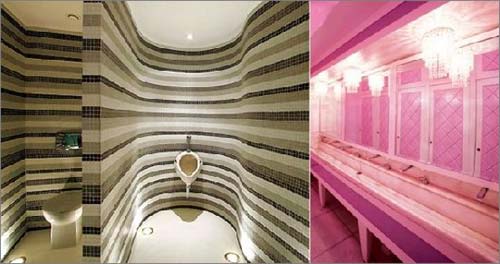 傳統觀念中的衛(wèi)生間是房屋中最不受人待見的一個房間,是臟和臭的代名詞,沒有“急事”誰都不愿意靠近它??墒侨藗冏非笫孢m生活的要求是遍及生活的方方面面的,包括衛(wèi)生間?,F在城市中對于衛(wèi)生間環(huán)境的要求也越來越高,在擺脫過去臟臭的基礎上,追求起高檔舒適的感覺了。酒店、餐廳、酒吧等高級場所的衛(wèi)生間是最早適應形式變化的,使衛(wèi)生間也融入到整個高檔消費場所的大環(huán)境中。可是如果當更多的地方的衛(wèi)生間如這些圖中設計的一樣時,我相信,進衛(wèi)生間都會是大家追求享受的一種方式了。