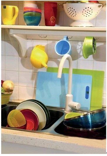 鍋碗瓢盆都用上了糖果色,搭配上白色的墻壁和白色水龍頭以及白色隔板,讓這么個樸素的色彩平臺,提高了很大的飽和度,純粹的糖果色搭配,再多的色彩也不怕繁復(fù),讓廚房空間成為一個色彩大舞臺,設(shè)計(jì)出一個屬于年輕自己的個性廚房空間。