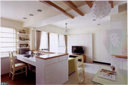 因?yàn)槭切∽≌?,所以屋主?duì)于把握空間的利用率更為在意,特別是收納功能的規(guī)劃很重視。除了收納空間的設(shè)計(jì)外,屋主對(duì)于空間風(fēng)格也有自己的偏好,喜歡明亮、清爽又帶溫馨的空間質(zhì)感。由于室內(nèi)只有50平,除了主臥外,其他空間皆采用開(kāi)放式設(shè)計(jì)。設(shè)計(jì)師順應(yīng)空間特性規(guī)劃收納功能,從入門(mén)玄關(guān)鞋柜連接餐柜,到哪臺(tái)連接書(shū)桌等等,皆以復(fù)合式功能概念規(guī)劃,屋主最重視的書(shū)柜也以雙層設(shè)計(jì)達(dá)到雙倍收納,充分利用了空間。