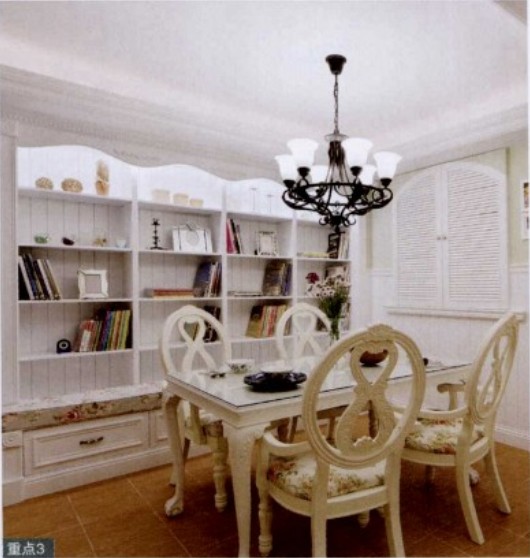 概要: 業(yè)主鐘情于美式鄉(xiāng)村風格,于是設計師就將這個四房改成三房,將位于客廳旁的房間拆除,規(guī)劃開放式餐廳與書房,特意選擇古典風格中常見的Shutter窗的形式結(jié)合百葉串連空間,讓空間在開闊之余仍具個性風格。對于一個愛閱讀的業(yè)主,書籍的擺放收納自然是重點了,設計師特意將書房與餐廳合并,書柜同時也可以作為餐柜使用,讓家人可以一起用餐、看書。這個似乎有違健康飲食的作法呢。