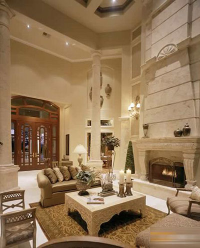 雕飾精美的柱子和由多個拱形相連形成的門廊、以及燈光溢彩的樓梯間都相當(dāng)吸引眼球。當(dāng)你走進這座居住面積達到5,816平方英尺的豪華別墅時,每一處都可看出設(shè)計師的獨具匠心。