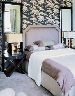 素雅與華美構(gòu)筑的溫馨氣氛,突出了簡(jiǎn)約生活的精致與舒適;象征延年益壽的松柏圖案,在古樸中融入更多現(xiàn)代色彩,其大面積的夸張運(yùn)用,并沒(méi)有與空間產(chǎn)生不和諧之感。