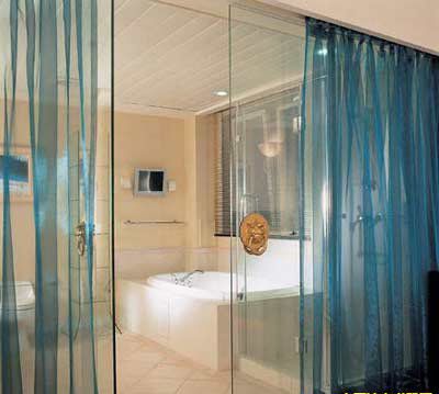 概要: 現(xiàn)在人們的生活水平已經(jīng)日益的提高,希望這里是生活的延伸,而不是中斷,可以在這個(gè)衛(wèi)浴空間做很多事情,比如化妝、換衣服、打電話、寫東西……這是人們對生活熱衷?! ⊥耆鲕壨该餍l(wèi)浴 衛(wèi)浴空間本來應(yīng)該是很私密的空間,但是也有人把衛(wèi)浴開放至透明化?!巴该髟∈摇卑褖Σ鸬艉?,換成了玻璃墻面,于是衛(wèi)浴成了客廳的背景,而客廳墻面上的裝飾畫也就成了浴室的背景。