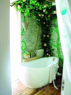 鵝卵石鋪就的光滑墻面、圓潤(rùn)的全裙落地按摩浴缸、入墻式龍頭和花灑,加上仿真藤蔓花架,令你仿佛置身于水清沙白的海邊天際。利用通透飽滿的日光變化使身心和諧,達(dá)到天人合一的境界,更將洗浴過程中的舒適享受推向了極致。