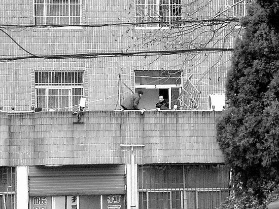 記者注意到,固鎮(zhèn)縣財(cái)政局辦公大樓為五層樓,從一層到四層的玻璃窗均有防盜窗防護(hù),只有五樓的過道臨街窗戶沒有封閉。殷勇正是從五樓打開一處窗戶跳下樓,摔至二樓平臺(tái)不幸身亡的。