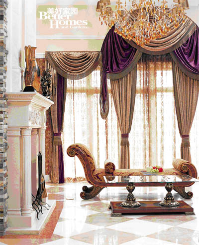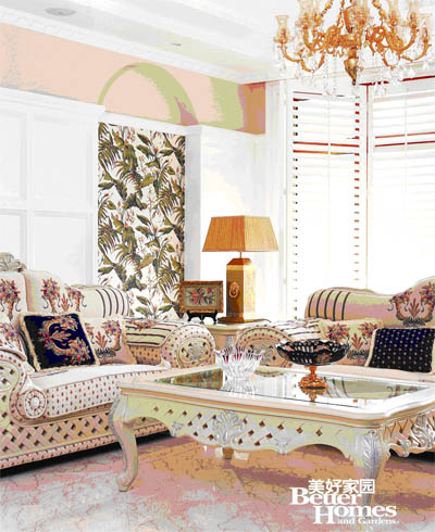 圖1:客廳的硬裝基礎(chǔ)氣質(zhì)硬朗,所以在家具的造型、壁紙的圖案、窗簾的形式中大量地運(yùn)用柔美優(yōu)雅的曲線破解, 平衡了橫平豎直的硬板。在不動(dòng)聲色中達(dá)到視覺(jué)平衡、以柔克剛的效果。
