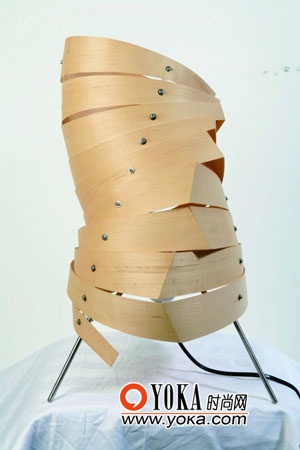 設(shè)計(jì)師MATALI CRASSET設(shè)計(jì)了這款可自行拆卸組合的燈罩,利用了木片布般的神奇韌性,以及在彎曲時(shí)不易斷裂的特點(diǎn)。當(dāng)光穿透木片,呈現(xiàn)出柔暖的光線,天然的木紋依稀可見,自然就這樣被帶進(jìn)了室內(nèi)空間。