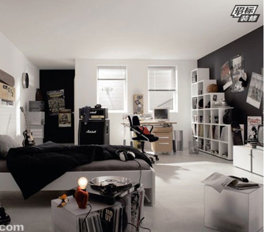 時(shí)尚單身男士的臥室,咖啡色的空間沉穩(wěn)大氣,灰色在白色背景墻的襯托下,顯得更加氣質(zhì)不凡,彰顯出男士紳士、穩(wěn)重的一面。黑色的門板和穿套都與墻面是很好的呼應(yīng),這樣時(shí)尚現(xiàn)代味濃郁的室內(nèi)色彩,正適合單身男士的喜愛和追求,看起來,炫酷時(shí)尚。