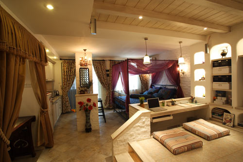 這是一個6萬元裝修打造的時尚小居,僅45平米的小戶型,主人采用了完全開放式的設(shè)計,混搭地中海式的韻味、日式榻榻米、簡約北歐風(fēng)格于小小的45平米空間。地中海白色主調(diào)與藍色、紫色、咖啡色和米色的搭配,配以柔和的燈光,輕絲綢蔓摻和現(xiàn)代風(fēng)情的韻律,讓浪漫與愜意一同綻放