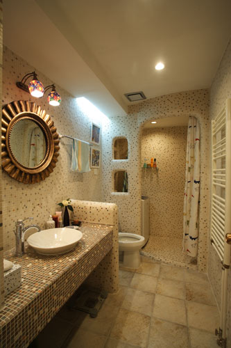 洗手間則是另有一個天地,簡約歐式又滲入一絲古典的田園風(fēng)格。 這套45平米的空間,充滿迷人溫馨和度假休閑的生活感,屋主僅僅花了6萬元,包括硬裝修、家具和軟裝飾,只要有心思,其實花費不大也一樣可以把小家裝修出靚麗的風(fēng)采來。 其實,家居也不是一定要大面積才漂亮,小戶型如果經(jīng)過精心的設(shè)計,溫馨的感覺要比大戶型更加強烈,很顯然人氣在家居中十分重要,浪漫也需要人氣與緊湊的情調(diào)想結(jié)合才感染溫馨情趣,因此如果只是一個倆個人的世界,又何必追求大戶型,小戶型可以更加體驗浪漫和溫馨。
