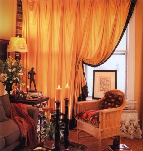 對于有些家庭的窗簾設計,也許本身的特色并不突出,甚至色彩的使用上也用淡淡的色調。如上圖所示,在一室華貴的家具中,窗簾仿佛只是一個低調的傾聽者,也許你并沒有在意它的存在,可是它卻靜靜地為你守侯著,使你處于空間中能得到全身心的放松。室內空間的擺設是一種品位哲學,好與不好可以因人而異。在非主流的時代,品位一詞也是褒貶不一。這兩個完全不同的窗簾色彩在裝飾室內空間也有著完全不同的作用,每一種是為空間增添活力與色彩,第二種是則是淡淡的相輻,讓室內空間更為出彩。