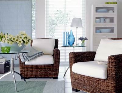 最能體現(xiàn)客廳清爽風(fēng)格的色彩當(dāng)然是各種各樣的藍(lán)色,仿佛在蛋清里攪拌過的柔嫩的藍(lán)色,變幻無窮,都是對客廳色彩的絕好演繹,且在視覺上有增大空間的感覺