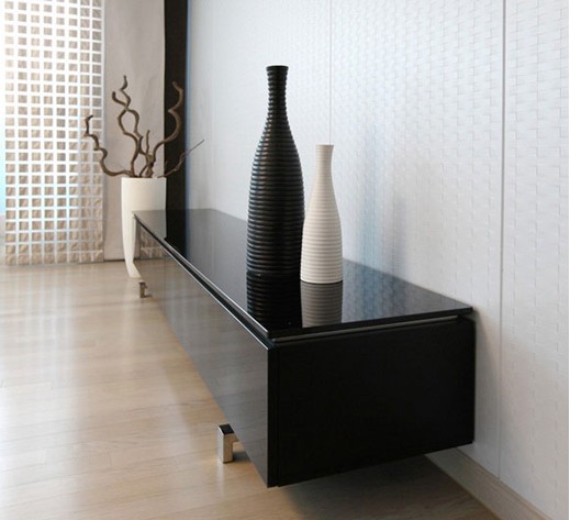 線條優(yōu)美的陶瓷圓形花瓶透出一種柔和的元素,同時(shí)也給花瓶設(shè)計(jì)加入了另一層設(shè)計(jì)元素。矮柜一角的白色盆栽放置著不規(guī)則的樹枝裝飾,也為室內(nèi)的線條設(shè)計(jì)增添了一份味道。