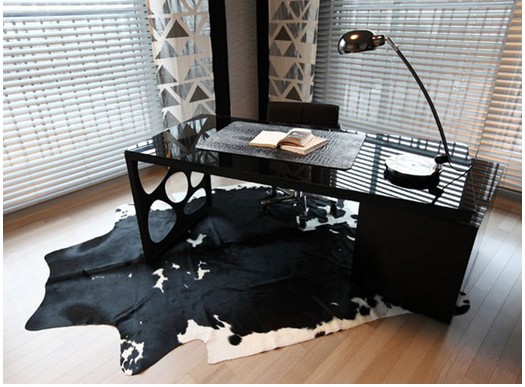乳牛花紋地毯的黑白色和全屋裝修主題保持一致,淡咖啡色的地板為黑白陪添加了中庸的元素。書桌腳靠窗一面的鏤空設(shè)計(jì),不僅節(jié)省了家居生產(chǎn)的成本,弧形線條還能和室內(nèi)的直線,三角形線條相配合,給人以視覺的沖擊力。