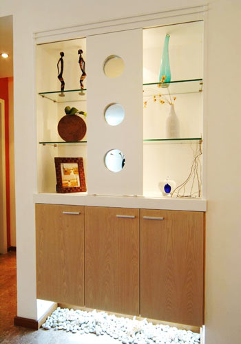 7、在玄關(guān)處擺放的家具要以不影響主人的出入為原則。如果居室面積偏小,可以利用低柜、鞋柜等家具擴大儲物空間。還可通過改裝家具來達到一舉兩得的效果,如把落地式家具改成懸掛的陳列架,或把低柜做成敞開式掛衣柜,增加實用性的同時又節(jié)省了空間。
