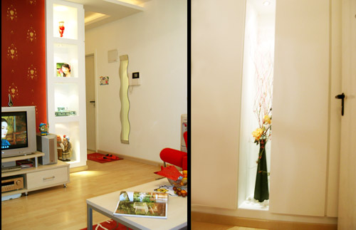 2. 客廳玄關(guān)的采光宜明不宜暗 ,而大部分住宅的玄關(guān) ,都沒有自然光源 , 因此在采光方面必須多動腦筋。除了間隔宜采用較通透的磨砂玻璃之外,客廳玄關(guān)大多沒有室外的自然光 , 便要用室內(nèi)的燈光來補救 ,例如安裝燈之類的。