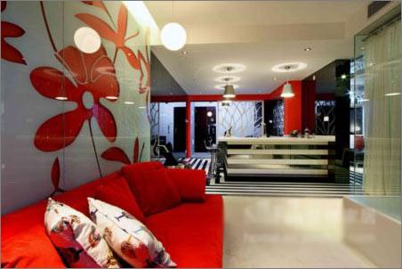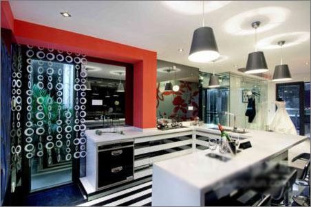 2、室內隨處可見的花朵圖案,完全滿足了女性追求美的需要,像客廳紅色沙發(fā)倚靠著白色背景、紅色花瓣的墻面;隔開廚房通往其他空間的一整面鏤空植物造型墻;臥室墻面上的大型花瓣,花朵的獨特造型是居于此的人對美麗事物的執(zhí)著追求的體現(xiàn)。就連浴室內純粹的黑、純粹的白,無不在述說著時尚和女性的精神涵義,整個空間在各種元素的相互作用下互動著,進而向人們傳達一種柔美、時尚的居住空間,如同一場空間交響樂,線條伴隨著音符不停的舞動……