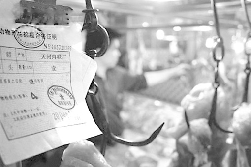 梁經(jīng)理告訴記者,該市場平時一天進場的生豬3000頭左右,17日晚,批發(fā)商運來兩批豬,并出示了《檢疫合格證》,這兩份造假的檢疫證都來自湖南,是在當(dāng)?shù)貍卧斓?,?dāng)時檢查員未能察覺?!澳桥i是晚上來的,當(dāng)班的可能沒注意到檢疫證也有假的?!绷航?jīng)理說。