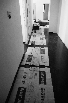 客廳地板保護(hù)層上擺放各種基材和主材,分為兩邊,同時(shí)在各種材料前樹(shù)立詳細(xì)的牌子,指明區(qū)域擺放的材料。位于入戶(hù)門(mén)內(nèi)側(cè)的警示牌“下班斷水?dāng)嚯姟碧嵝蚜斯と藥煾担沤^了工程意外事故。水泥砂漿攪拌槽和泡磚盆在另外房間內(nèi)。