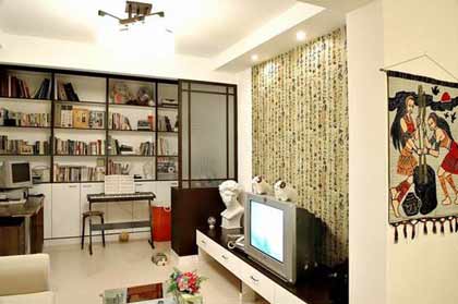 第九,可在客廳角落以簡(jiǎn)單的桌椅營(yíng)建一個(gè)工作空間,再以屏風(fēng)來遮擋桌椅。