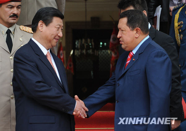 2月18日,國家副主席***在加拉加斯會見委內(nèi)瑞拉總統(tǒng)查韋斯。新華社記者 黃敬文攝