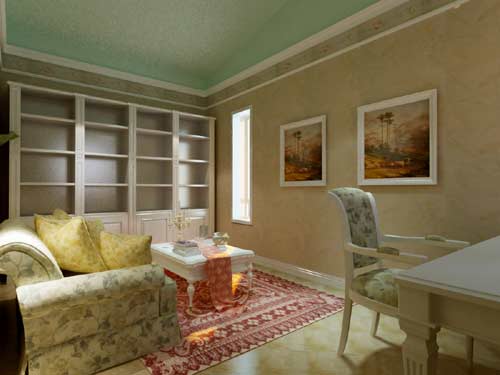 書房:歐式復(fù)古的家具和油畫,散發(fā)著簡•奧斯汀式優(yōu)雅從容的書卷氣息。