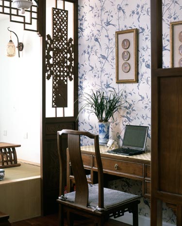 王驍捷透露,他自己特別喜歡中式的一個(gè)原因是:中式家居里有很多東西需要自己去diy或者去淘,這正是中式的樂(lè)趣所在。“我喜歡家里每一樣?xùn)|西都有一個(gè)故事的那種感覺(jué),比如這個(gè)盆栽是我自己修剪的,這副珠簾是我自己的串成的,那幅字畫(huà)是我自己創(chuàng)作的等,這些屬于diy。說(shuō)到淘寶就更有意思了!我經(jīng)常陪同業(yè)主到潘家園、高碑店一帶淘古玩。有一次我們?cè)谀侈r(nóng)家院里看中了一個(gè)石馬槽,花了幾百元把它買(mǎi)下來(lái)作為養(yǎng)錦鯉的魚(yú)池,效果非常棒,因?yàn)轳R槽看起來(lái)年代久遠(yuǎn),業(yè)主特別迷戀這種滄桑古舊的歷史感?!?/FONT>
