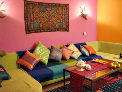 色彩的選用以明麗鮮艷為主,強(qiáng)調(diào)冷暖對(duì)比,以大面積的純凈色彩與小面積的強(qiáng)烈色彩搭配見(jiàn)長(zhǎng)。比如,大面積的黑與小面積的紅、大面積的藍(lán)與小面積的玫瑰紅相配等。