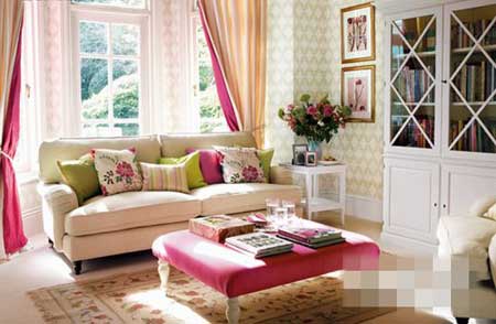 為平淡的空間加入一至兩種主題色彩,能迅速獲得驚艷的效果。有了顏色作為裝飾主線,無需再加入過多的配飾。如果房間里的輔助色彩用于墻面等大面積裝飾,那么主題顏色的使用面積就要相對小些。比如這里的粉色沙發(fā)凳,還有雙面窗簾中隱約出現(xiàn)的粉色。總之,主題色不能超過整體色調(diào)的10%。用靠包、鮮花等與主題色相呼應(yīng),令空間造型更顯完整和專業(yè)。