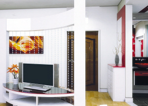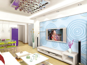 這間房屋的主人是一對即將結(jié)婚的年輕夫婦,在對房屋設(shè)計的要求上希望能夠脫離以往新房裝修時大紅大紫的常見做法,因此我采用了冷色調(diào)處理,讓他們能夠擁有自己獨特的風(fēng)格。經(jīng)過我進行實際度尺后,首先感覺到房屋的客廳不大,門多。于是我重新建了一個實用的多功能廳,盡量在不大的空間內(nèi)實現(xiàn)更多的功能,而且輕快時尚的居家氛圍也更適合時下的年輕人,并在滿足過道通暢的基礎(chǔ)上重新定位了電視背景隔斷,廚房特意做成了開放式的。在這套設(shè)計當(dāng)中,保證過道的流暢是設(shè)計的關(guān)鍵,所以我盡量地拓展視線,通過半開放的隔斷和弧線造型來滿足通暢的要求。