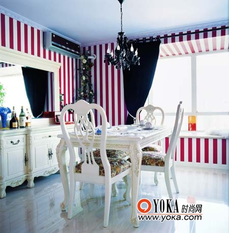 吃飯要有好的心情,粉白相間給人明快的感覺,很甜美。