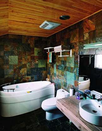 香水、化妝品、蠟燭、畫,這些東西你會(huì)放在浴室嗎?當(dāng)你塑造出干濕分明的浴室空間后,就再也不必怕這些擺飾品會(huì)因?yàn)槌睗穸l(fā)霉損壞。因此,猶如飯店一般,你也可以在你家浴室墻壁掛上一幅賞心悅目的畫,或擺上自己喜歡的照片、香芬精油、香芬蠟燭、花草盆栽等…,此外,你也可以利用鏡子兩旁的空間加裝強(qiáng)化玻璃架,擺飾具有美麗造型的香水或身體保養(yǎng)用品,還有化妝品、隱形眼鏡清潔用品,更可無(wú)后顧之憂的全部擺進(jìn)去,這樣一來(lái),一早起來(lái)洗完臉后,便可以在浴室內(nèi)輕輕松松完成上妝動(dòng)作,同時(shí)還一并完成頭發(fā)梳妝的動(dòng)作,這樣多元化的衛(wèi)浴空間,可以讓你緊湊的早晨,從此變的更為從容。利用優(yōu)美設(shè)計(jì)的收納層架,加上五顏六色的瓶瓶罐罐,都是浴室內(nèi)非常不錯(cuò)的裝飾品,只要發(fā)揮設(shè)計(jì)收納的巧思,并讓每個(gè)瓶瓶罐罐都能坐立整齊,就能讓浴室變得生氣盎然,發(fā)揮美觀實(shí)用的效益