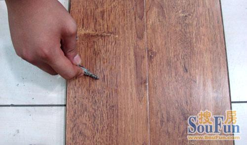 宏耐:強化地板的耐磨性是各類地板中最好的,大家可以在板面上用硬器來回劃擊,看有無明顯劃痕,劃擊聲是否清脆。有明顯劃痕,聲音悶而不脆較次之。一般來說,三氧化二鋁耐磨層應(yīng)付家居使用綽綽有余,相比之下更能