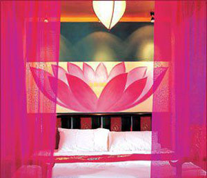 餐桌背后一幅壁畫,暗綠的底色上開了粉盈盈的桃花,娜姆解說:“當(dāng)初想讓它帶來桃花運(yùn)?!睕]有理睬我們一臉的錯(cuò)愕,接著說,“浴室的墻上是牡丹,那表示想追求榮華富貴。”“現(xiàn)在床頭的蓮花,”她的聲音明顯柔和下來,“那是佛祖蓮臺(tái)的象征,也是人心靈的最后皈依?!?