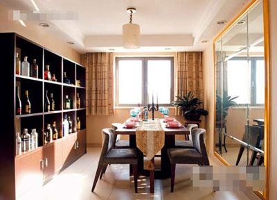 餐桌旁邊的酒柜,杜淳本來是設(shè)計(jì)成書柜的,“之前是想把餐廳和書房合為一體,因?yàn)椴蛷d利用率很低,我又沒有老婆又沒時(shí)間做飯,電腦打算放在窗戶和鏡子的拐角處,因?yàn)楦改阜磳?duì),覺得家還是要有家的整體感覺,結(jié)果做好的電腦桌只好又拆了?!?/FONT>