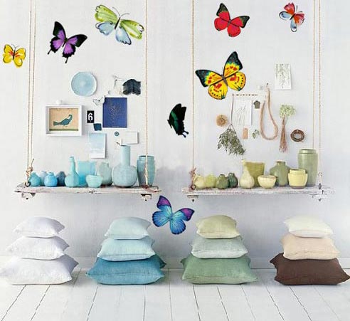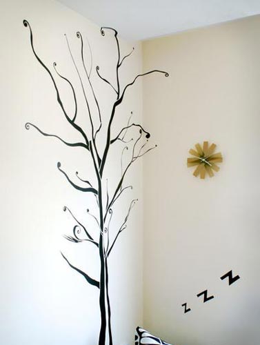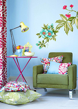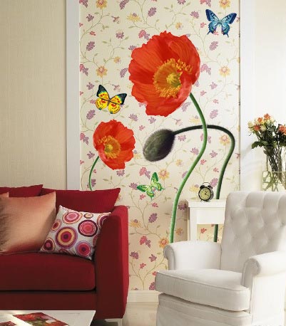 通過墻貼處理,將樹木、花朵、蝴蝶等常見的自然界形象直觀地表現(xiàn)出來。不但彰顯出主人的生活情趣,讓家賦予了新生命,也引領新的家居裝飾潮流。
