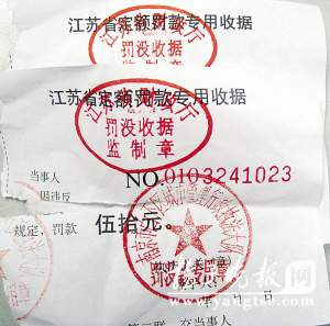 概要: 空白的收據(jù)齊刷刷的撕口讓人生疑。梅建明 攝要收據(jù)罰200,不要就罰150罰款也搞“議價”,南京朝天宮街道城管協(xié)管員涉嫌違規(guī)“協(xié)管員”,顧名思義,是協(xié)助管理的人員,他們并沒有執(zhí)法權(quán)和處罰權(quán)。然而,前幾天,記者接到在南京做小生意的商販程先生的投訴,稱自己經(jīng)營的三輪車被南京朝天宮街道行政執(zhí)法中隊的協(xié)管員扣留并罰款,其中存在諸多的違規(guī)之處。