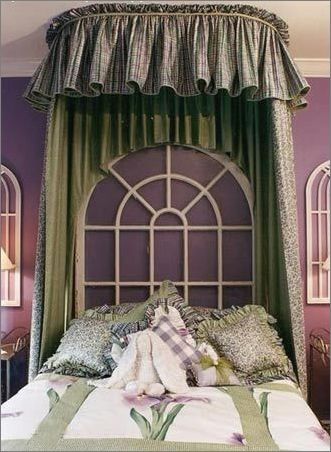 一般講,床頭那面墻沒有窗子的。人為地裝飾出假窗,在安全、 不受風(fēng)又享受通暢感,比如,造一個“中式”的圓形窗或“月亮門”,是別有風(fēng)味的。