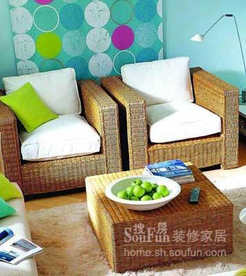 富含自然風(fēng)韻的藤材在布置飾品的搭配上,可以充分利用自然素材營(yíng)造出色效果,例如在藤籃或藤花瓶中放置水果或干花、干果等。藤制家具或藤制飾品的主要搭配方式,除了掌握自然、典雅、休閑的原則外,其次就是以色彩為主。當(dāng)空間主色調(diào)為深色時(shí),選購(gòu)的藤制品可傾向咖啡色或深褐色。淺色的家居空間,則可選用淺色或其他顏色的藤制物,搭配顏色較花哨、明亮的坐墊或布飾品。