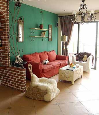 例如墻面為淺藍(lán)色,沙發(fā)則可選深藍(lán)色,抱枕則選用對(duì)比的橘色或沖突的紅色或是多色的圖樣。最好再加以一盆綠色喬木盆栽。大地色搭配永不失敗,因其來自自然界。