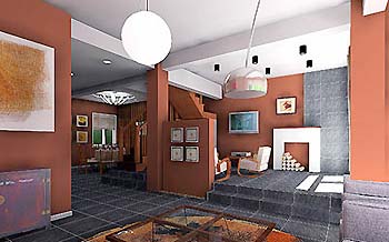 2、利用墻壁色彩變化區(qū)分。但色彩變化要注意整體協(xié)調(diào),對比不可過于強(qiáng)烈。