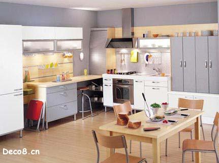 在裝修、布置小廚房的時(shí)候不僅需要各個(gè)面有色彩,而且還要有亮度,因?yàn)樾N房的使用面積非常有限,所以在整體色彩安排方面,應(yīng)切忌花花綠綠。特別要注意不能使用印有立體感圖案或明暗對(duì)比強(qiáng)烈的裝飾材料,否則不僅會(huì)使廚房面積在視覺上顯得狹小,而且容易使人產(chǎn)生凹凸不平的錯(cuò)覺。墻面色彩安排宜以白色或淺色為主,而不宜使用反差過大的顏色。