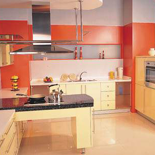 這是因為廚房家具色彩的色相和明度可以左右使用對象的食欲和情緒,而廚房的使用對象的家庭人口、成員結(jié)構(gòu)、文化素質(zhì)又決定了它對廚房家具色彩的喜好程度,因此對于家具色彩的選擇應從以上幾個方面來考慮。人在廚房中的主要行為有食品加工、烹飪等過程,在這個過程中要求保證食品加工、烹飪等過程衛(wèi)生、安全,在加工食品的過程中能刺激人的食欲,使人愛吃。