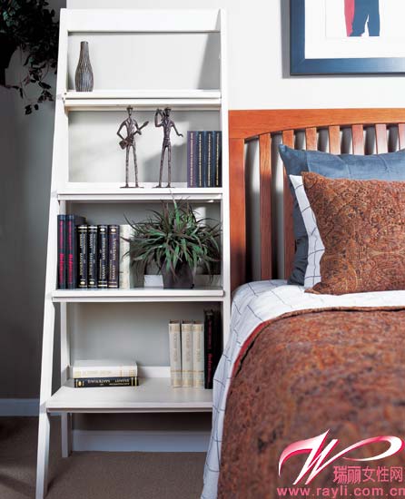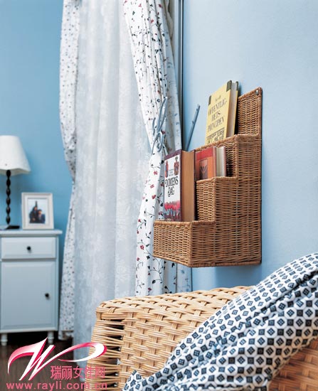床頭兩邊的墻上,可以各放置一個儲物盒,當(dāng)然要小型的,可以是藤質(zhì)的或者布藝的,可以放置報刊書籍,也可以放置眼鏡、筆等小件物品,這樣一個小型的休閑閱讀空間就出現(xiàn)了。