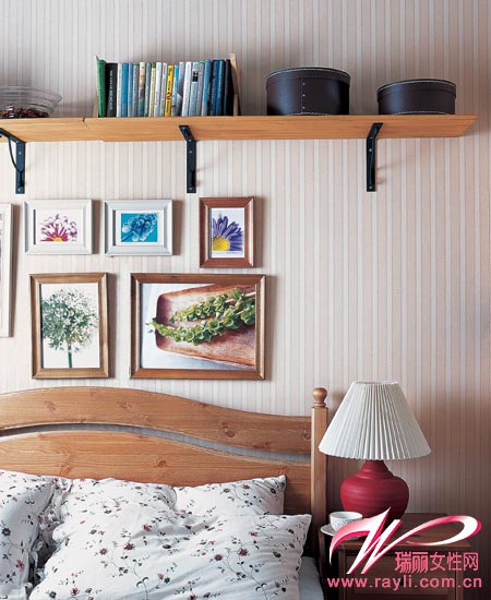 墻壁的上方可以用擱板,放置一些精美的擺設(shè)或者小型的花卉盆景等,下面可以掛照片或者裝飾畫等,讓墻壁不再單調(diào),而變成一處風(fēng)景。