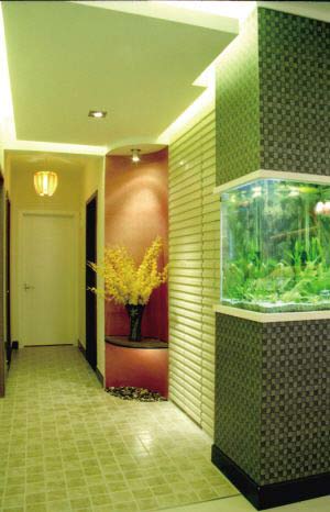 4、玄關(guān)的采光宜明不宜暗,而大部分住宅的玄關(guān),都沒(méi)有自然光源,因此在采光方面必須多動(dòng)腦筋。除了間隔宜采用較通透的磨砂玻璃之外,木地板、地磚或地毯的顏色都不可太深。因?yàn)轭伾畋旧砭陀谢璋抵?。客廳玄頭大多沒(méi)有室外的自然光,便要用室內(nèi)的燈光來(lái)補(bǔ)救,使如安裝長(zhǎng)明燈。這樣才符合風(fēng)水學(xué)上“廳明室暗”之說(shuō)。