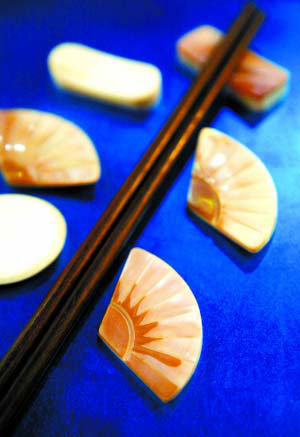 用貝殼制作筷托比較環(huán)保,也很有創(chuàng)意。采用貝殼本身的紋理打磨成扇面形狀,而不是壓碎成粉再成型,因此牢固度和色澤都非常好,既美觀也實用,而且清洗起來更是容易。