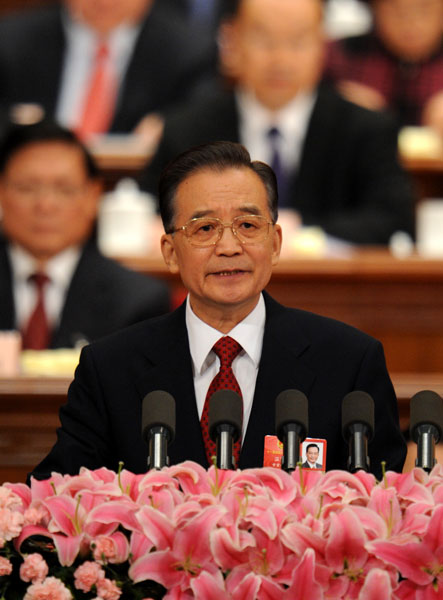 3月5日,第十一屆全國人民代表大會第二次會議在北京人民大會堂開幕。國務(wù)院總理***作**工作報告。新華社記者劉建生攝