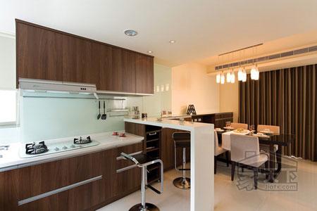 開放式廚房與餐廳,增加室內(nèi)采光及空間感
