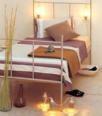 懸掛燈可以安放在床邊。燈亮時,映在墻上的放射線很漂亮。金屬燈的造型很可愛,照著床角的方式也很新穎。